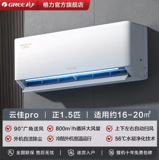 格力空调新一级能效大1匹正1.5匹变频卧室节能省电挂机云佳Pro
