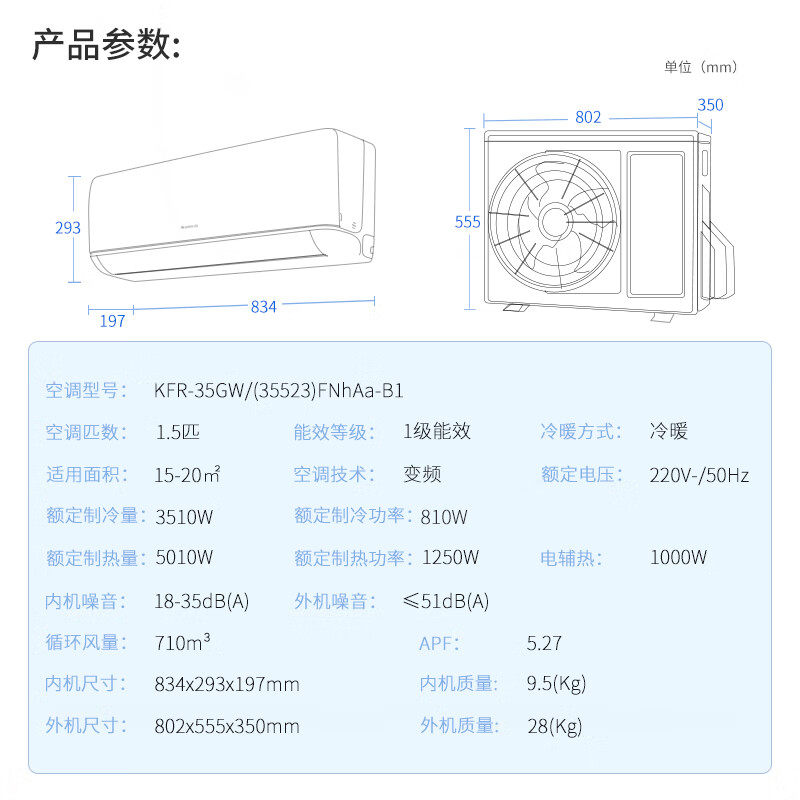 格力凉之爽1.5匹挂机空调新一级能效节能家用变频冷暖壁挂除湿