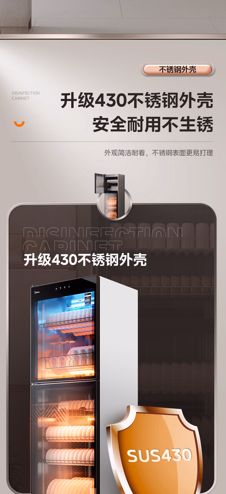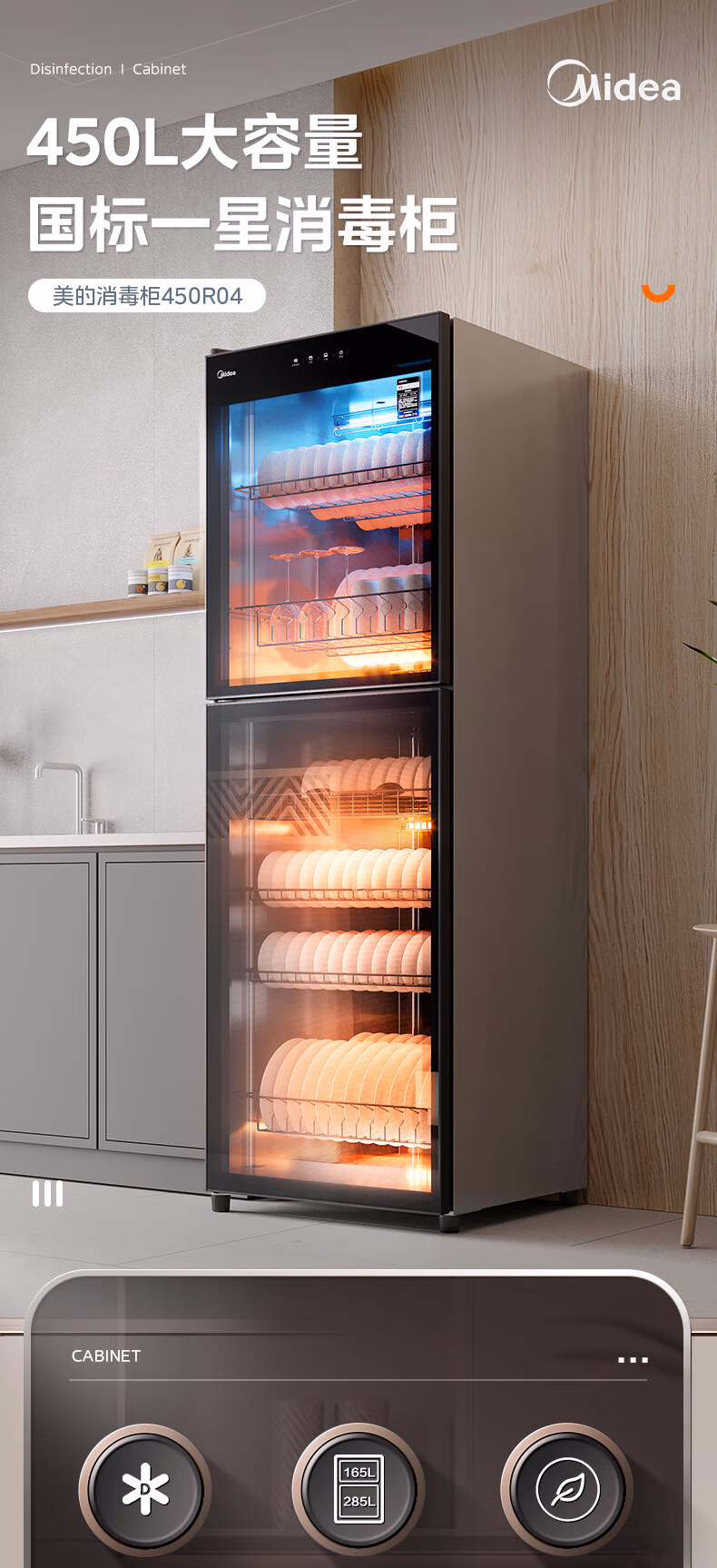 美的(Midea)450R04立式消毒柜 450L大容量家用商用消毒碗柜 餐厅食堂厨房碗筷餐具茶杯碗柜