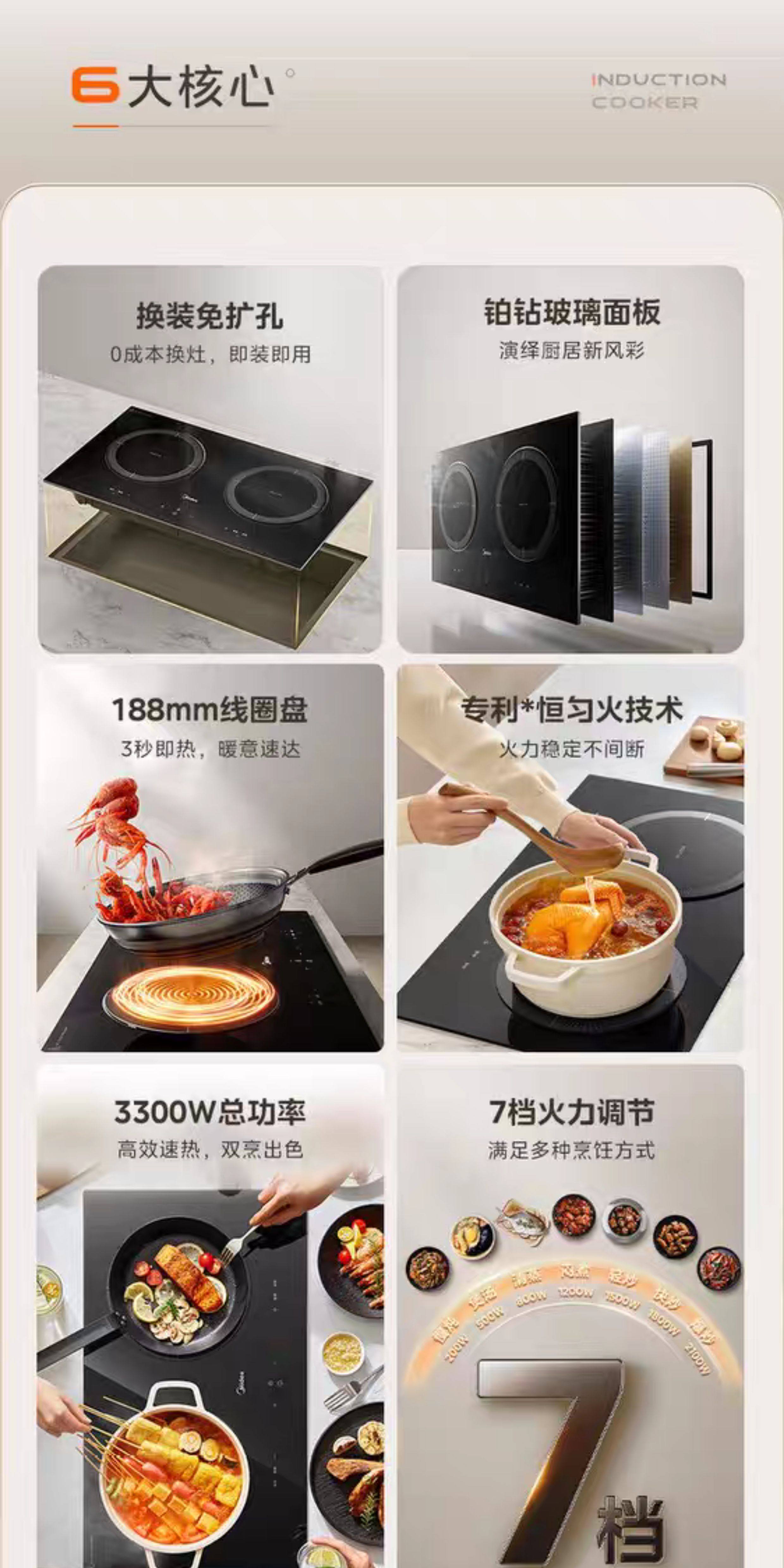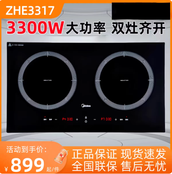美的双灶电磁炉MC-ZHE3317家用嵌入式防水大功率双头灶正品