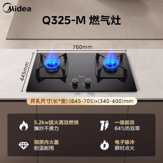 美的燃气灶Q325家用煤气灶天然气双炉灶液化灶台灶具