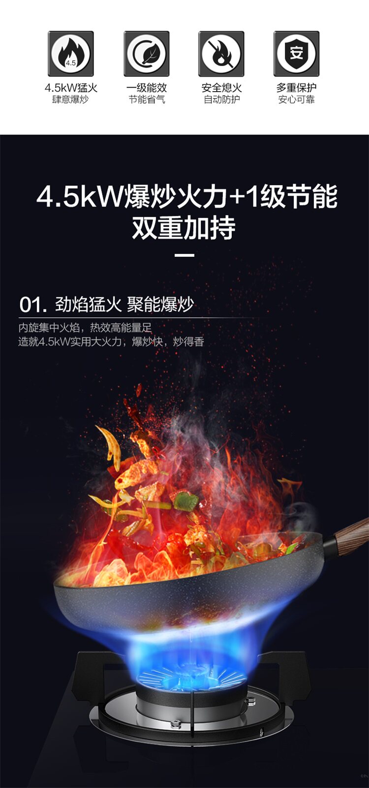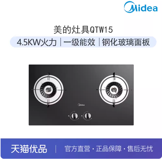 美的燃气灶JZT-QTW15家用4.5KW大火力嵌入式双灶燃气灶