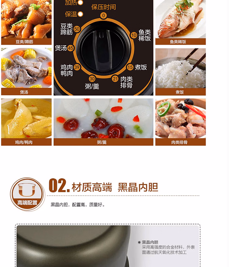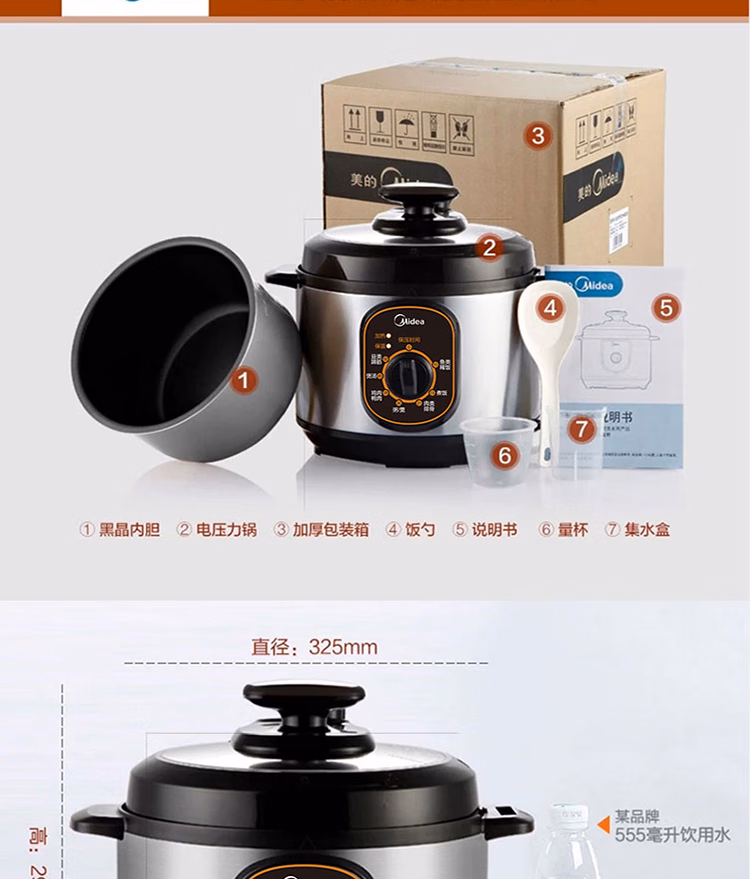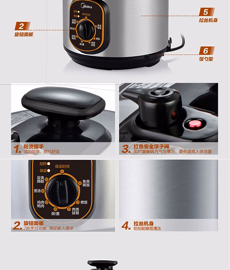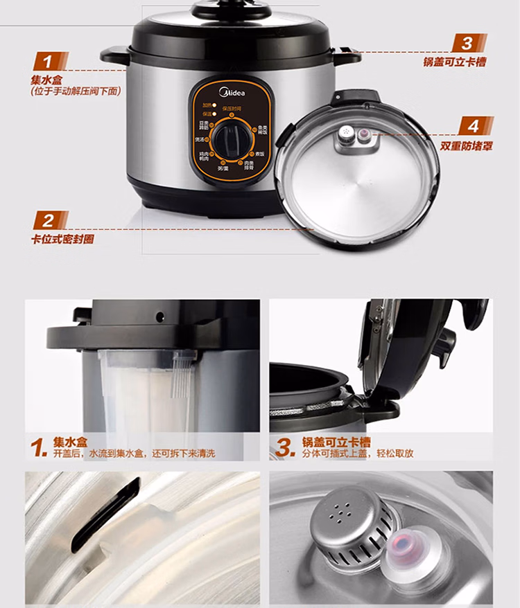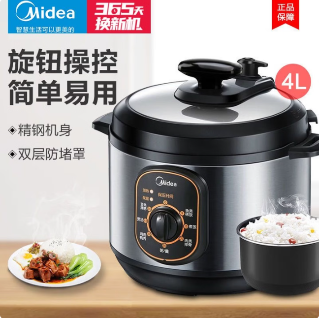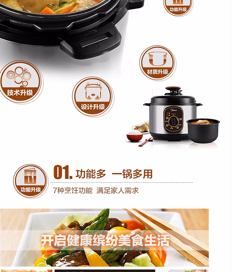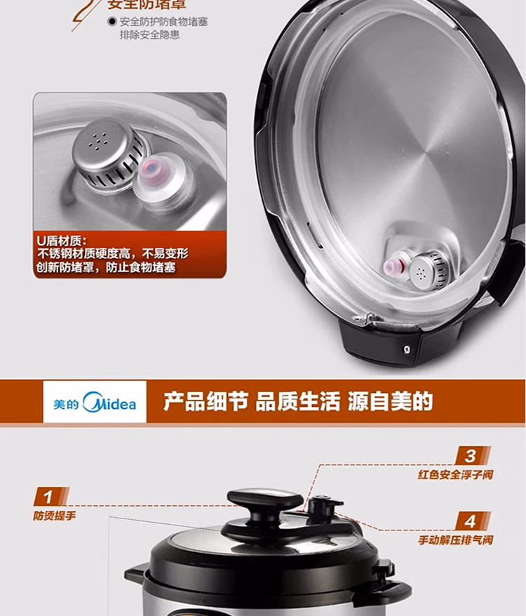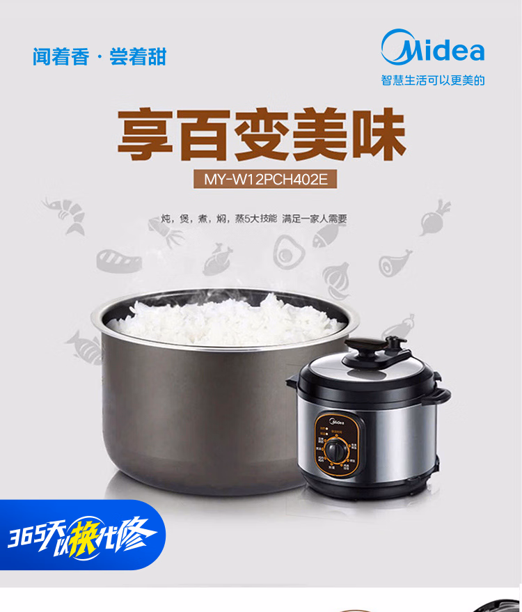 美的智能电压力锅家用多功能不粘内胆开盖火锅七大模式高压W12PCH402E