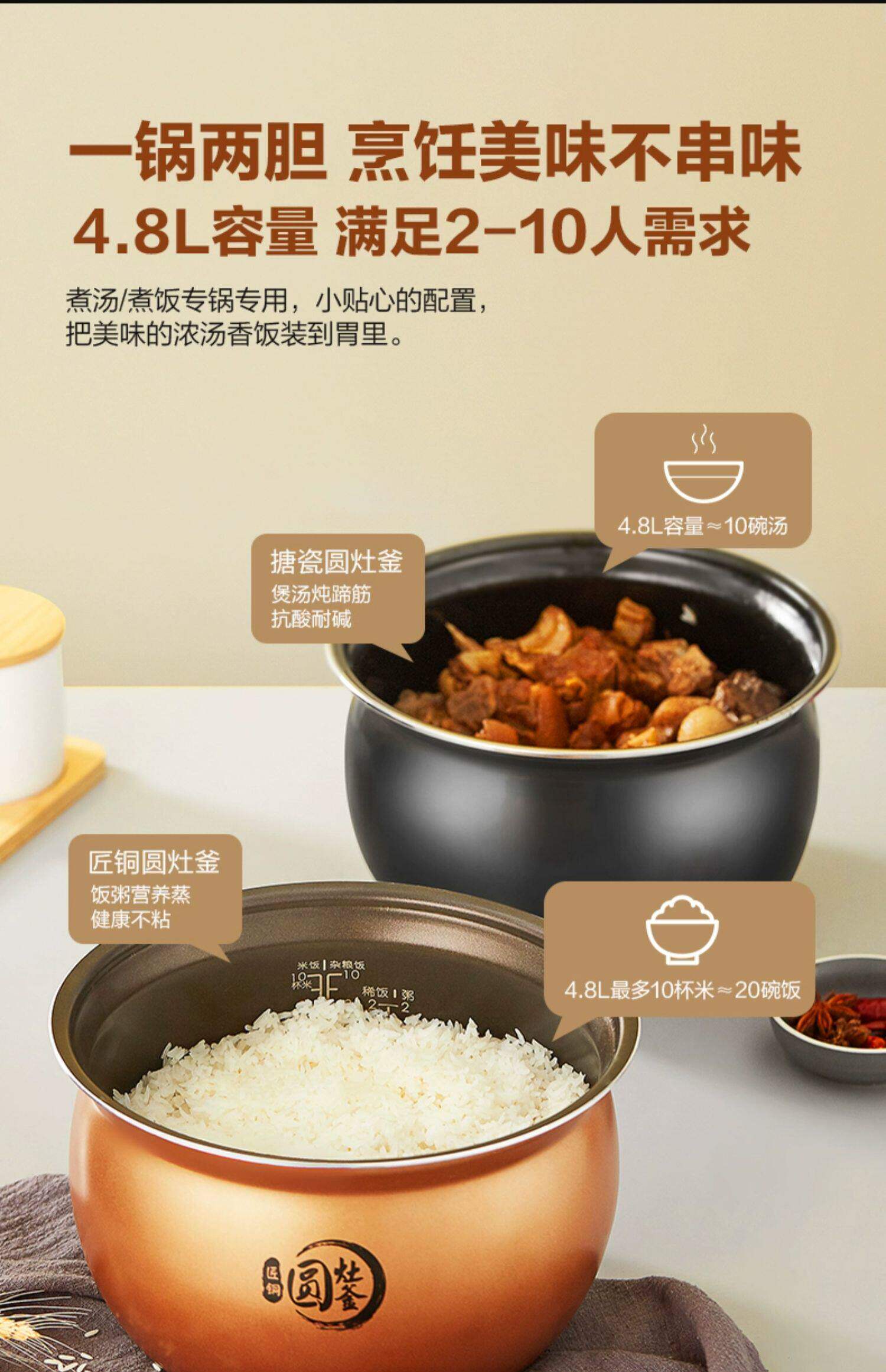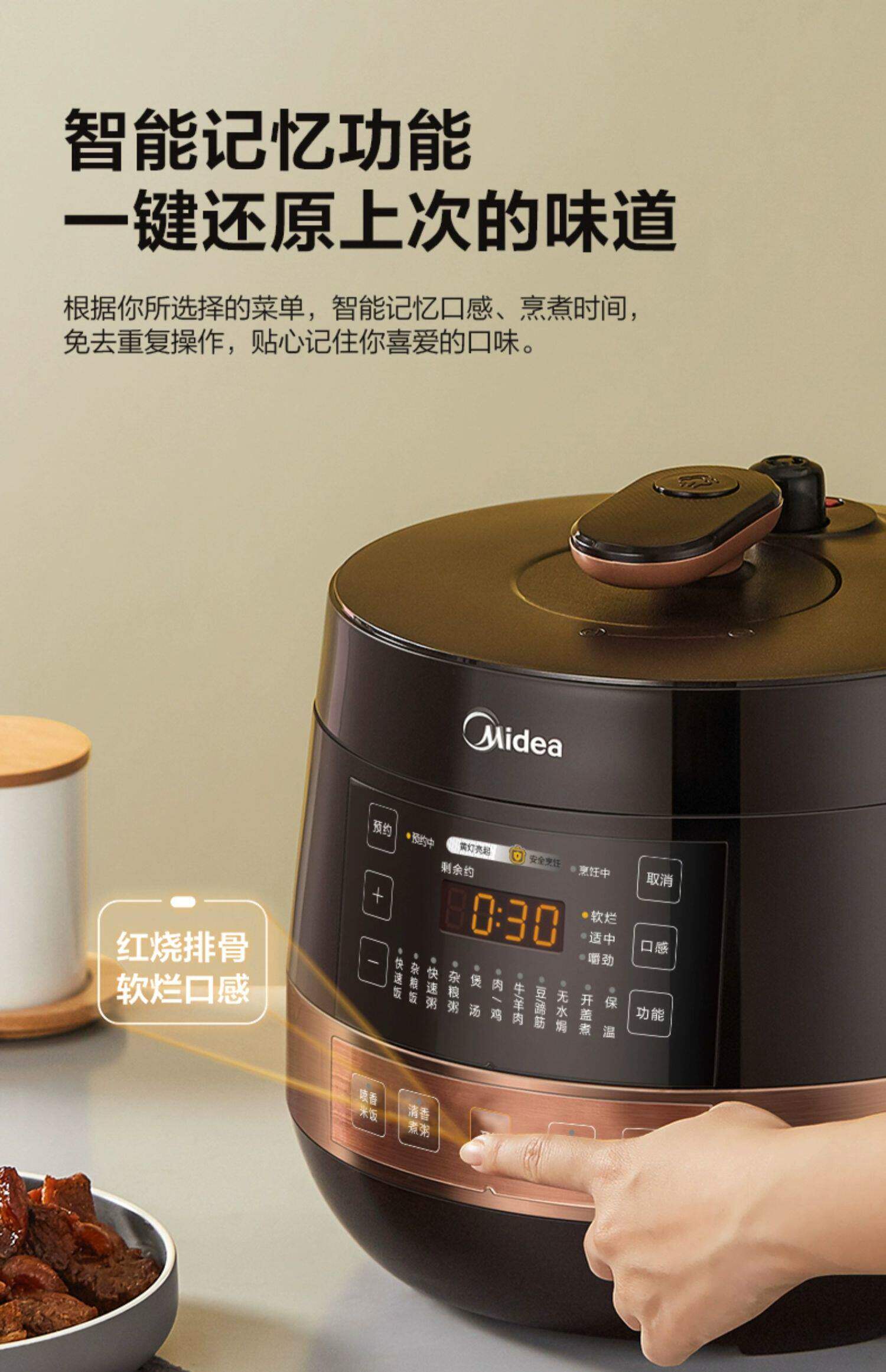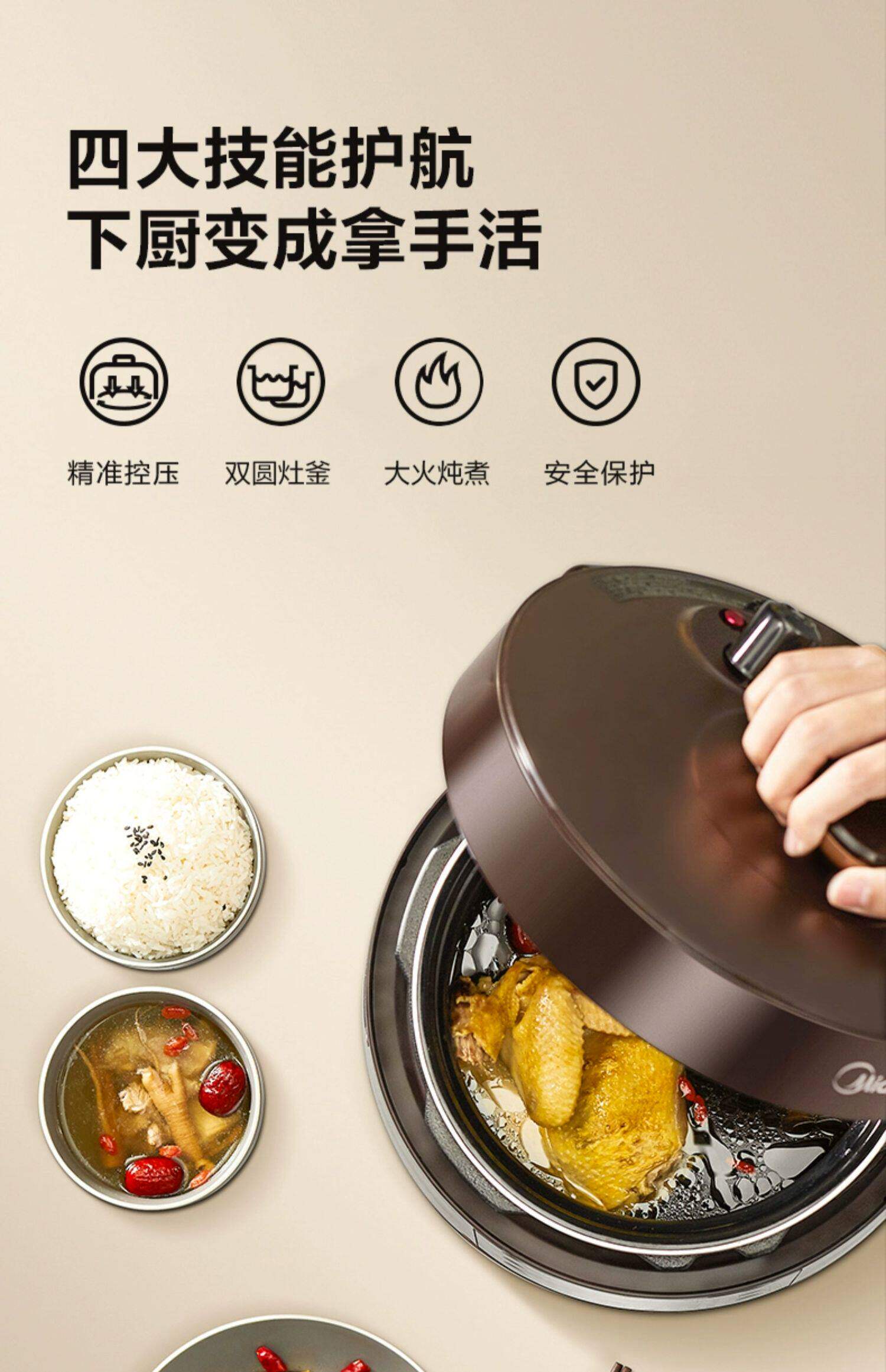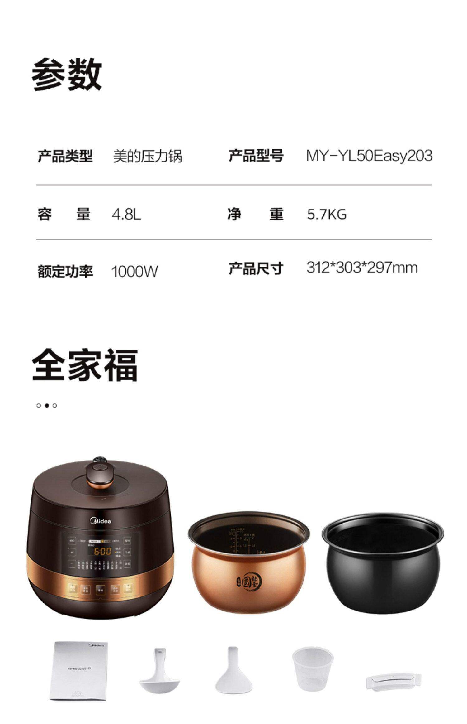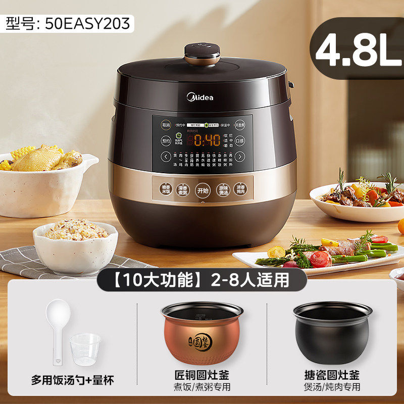 美的电压力锅家用5L智能预约双胆大火加热智能预约定时高压锅6升 YL50Easy203 【双胆 4.8L 】