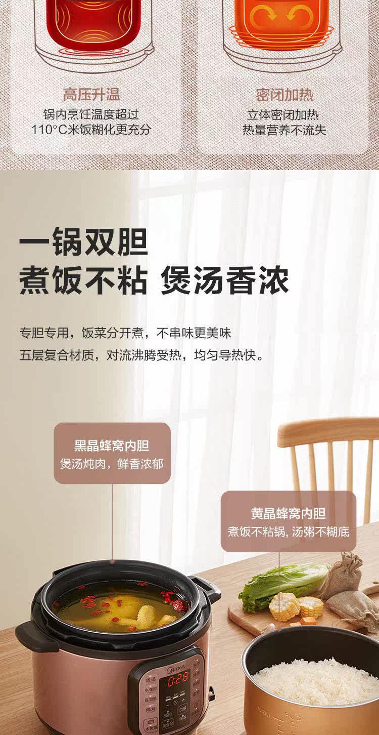Midea/美的 MY-CS5025/WCS5025智能家用多功能双胆电压力锅高压锅
