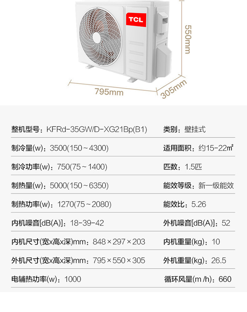 TCL KFRd-35GW/D-XG21Bp(B1) 新一级能效大1.5匹壁挂式空调