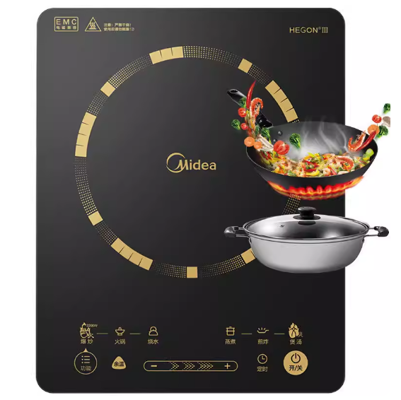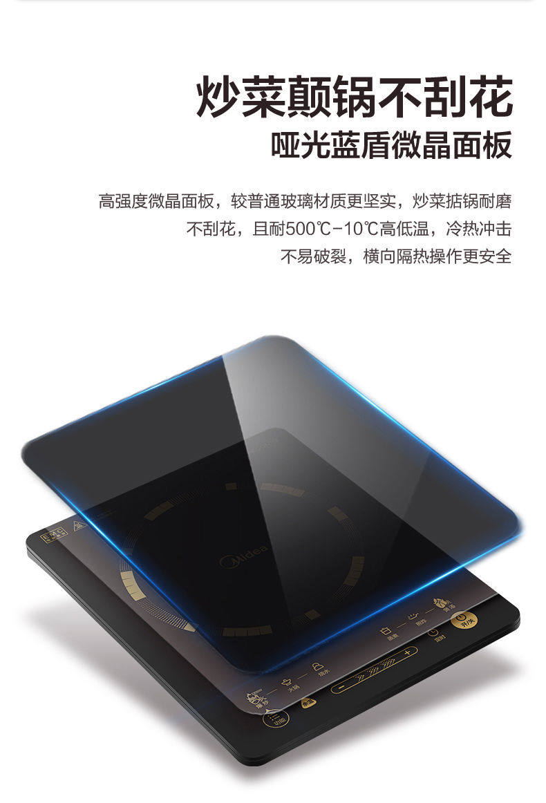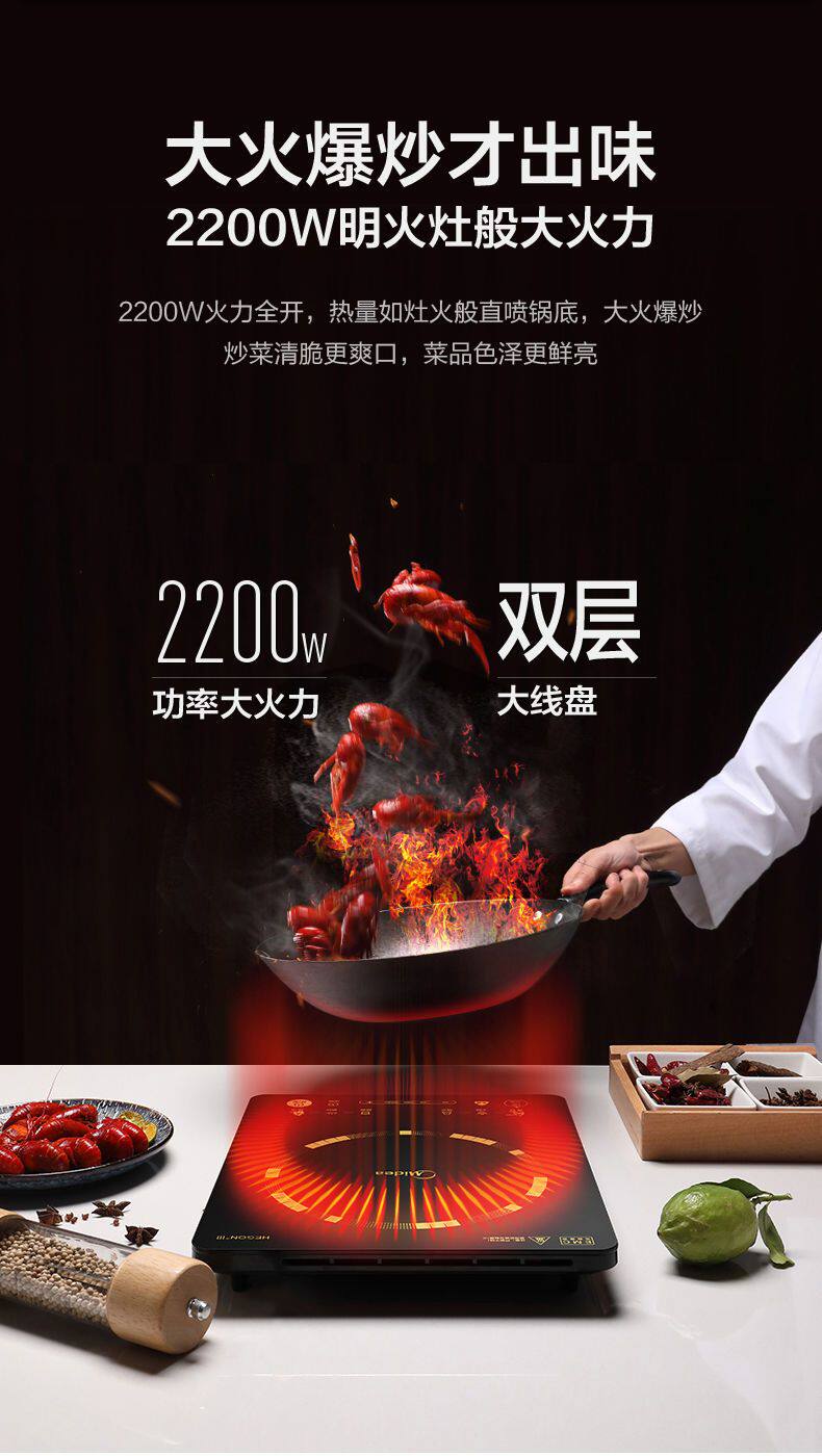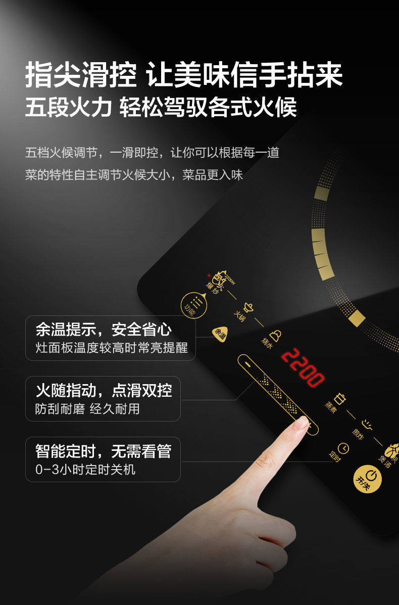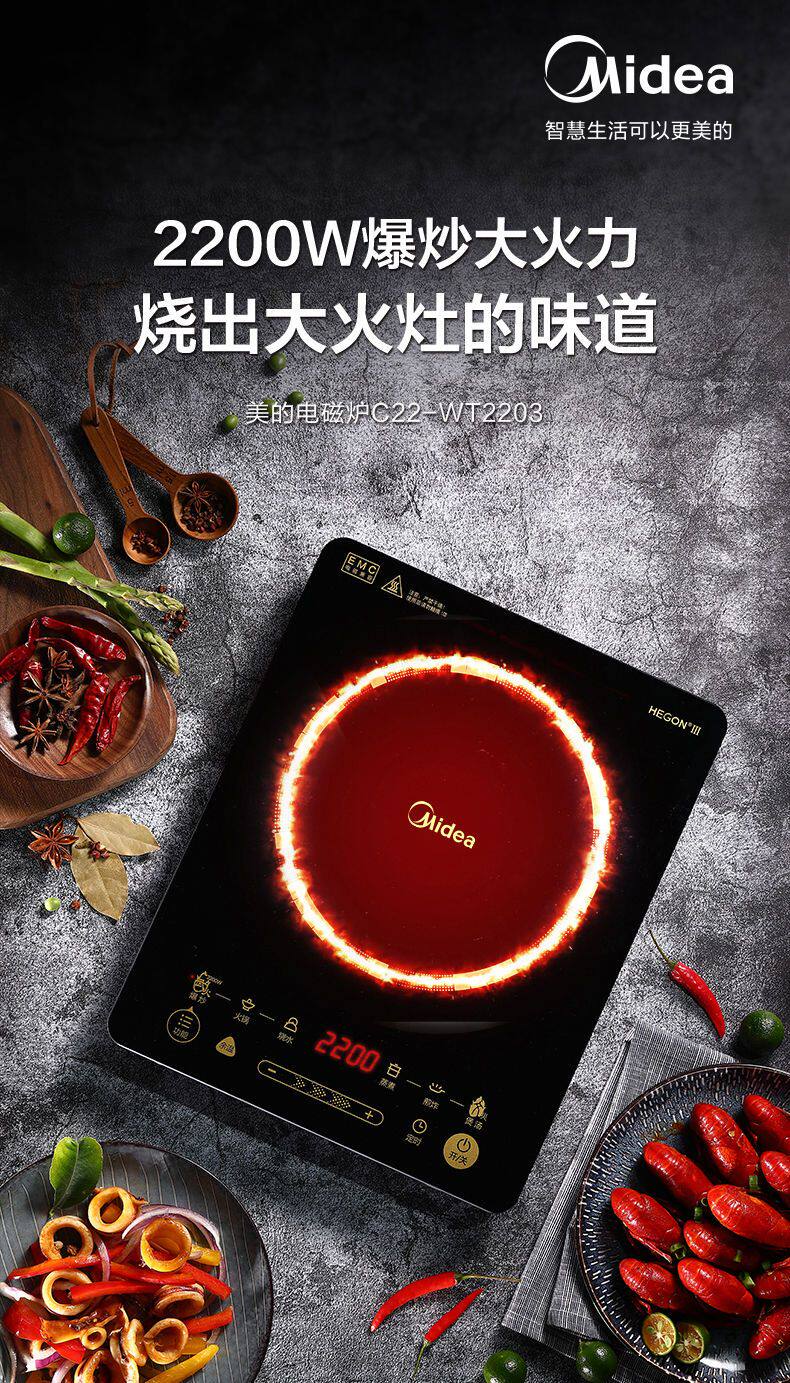 美的电磁炉点滑双控2200W大火力电磁灶火锅C22-WT2203赠汤锅炒锅