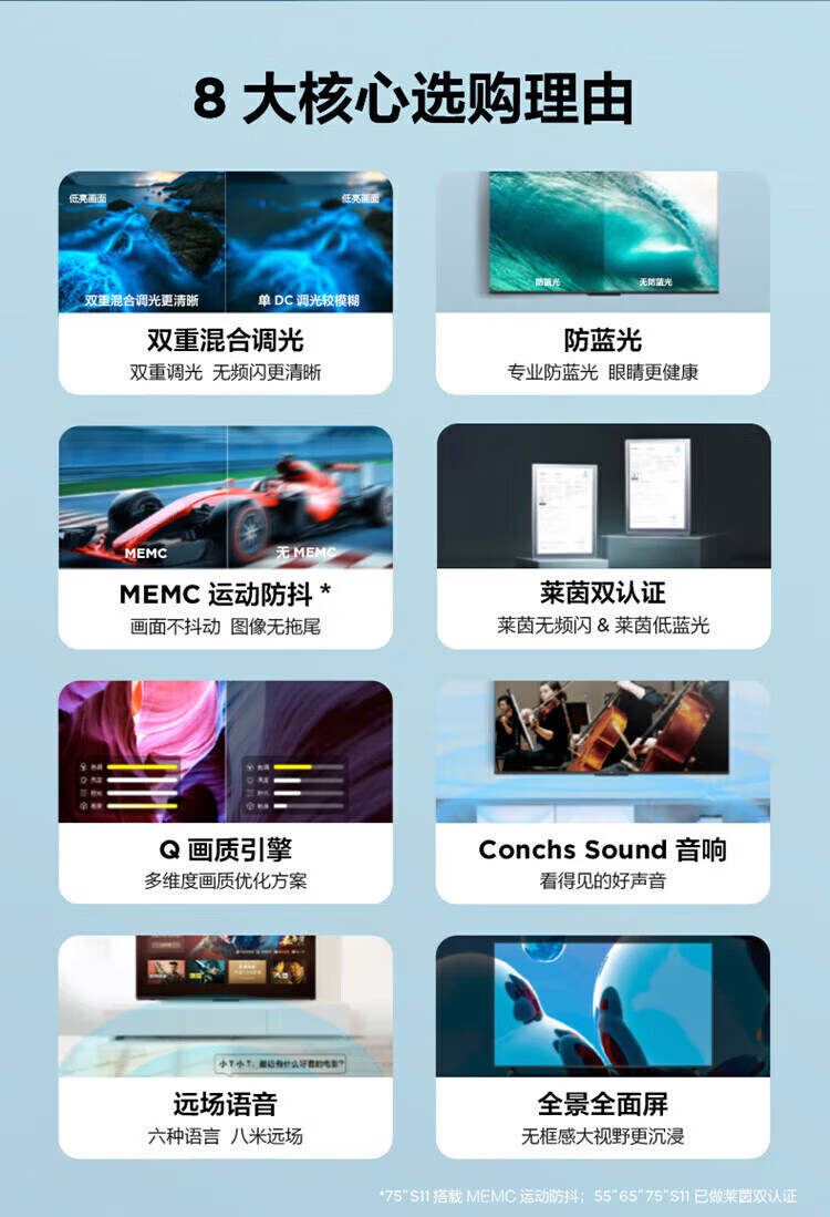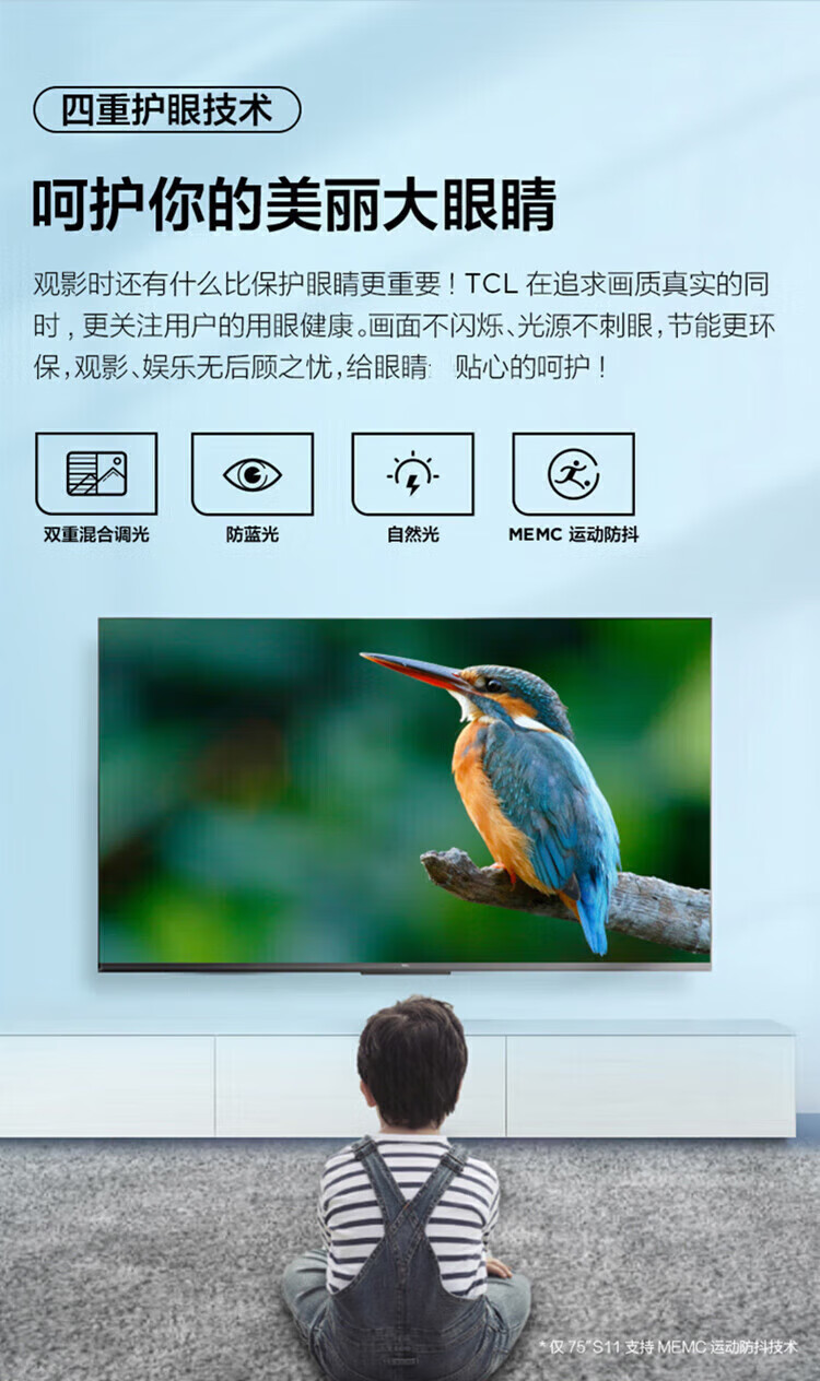 TCL 75寸护眼AI电视MEMC运动防抖莱茵双认证电视机 75英寸75 S11