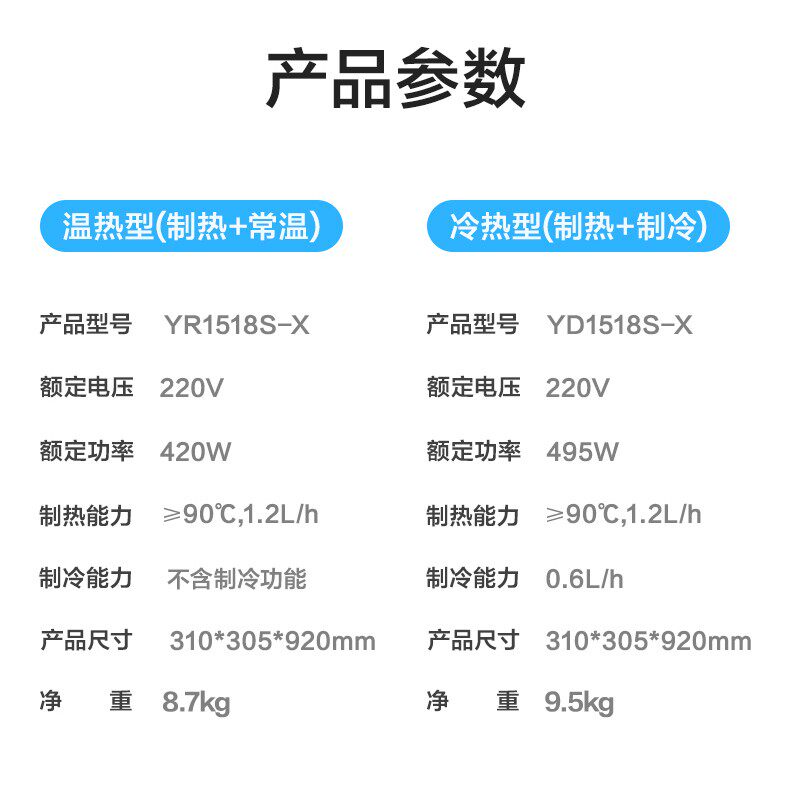 美的饮水机家用柜立式冰温热型办公封闭双开式YD1518S-X/YR1518S