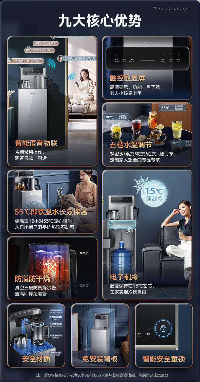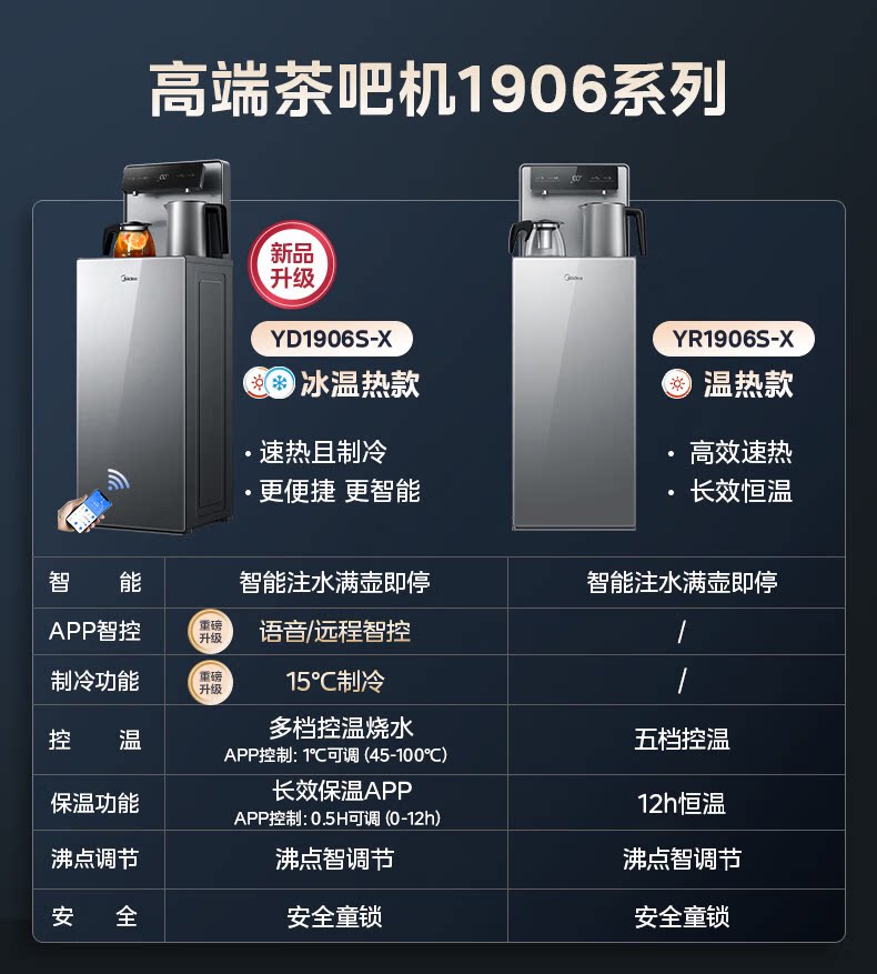 美的茶吧机家用高端饮水机下置桶温热YR1906S-X冷热YD1906S-X